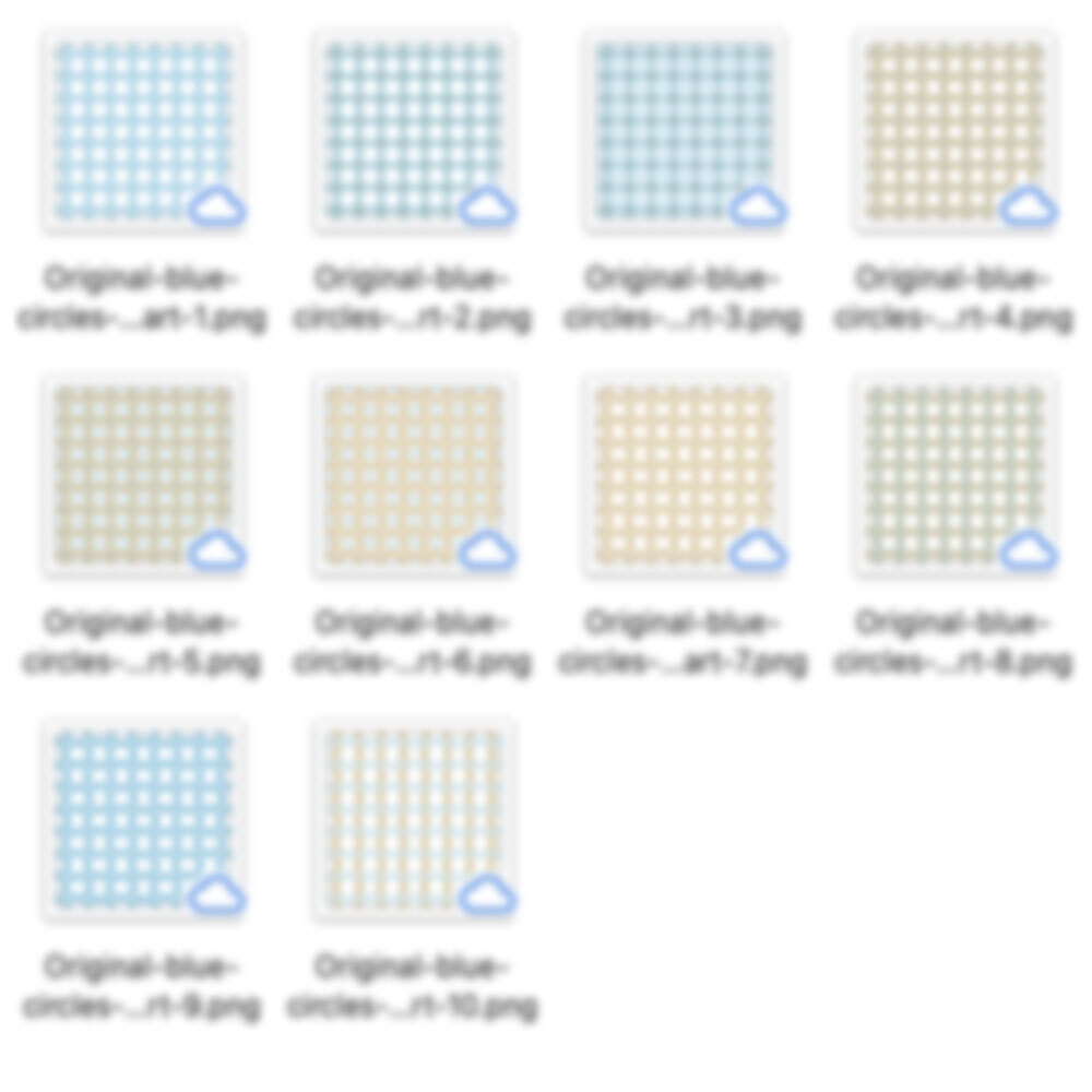 10 high-resolution Blue Circle Patterns (40x40 cm, 190 ppi), expertly designed by a specialist in modernist mosaics. Perfect for personal or professional projects, these patterns offer top-quality results and endless creative possibilities. Whether you're enhancing your artwork, creating unique backgrounds, or elevating your designs, these patterns are a valuable addition to your digital toolbox.